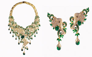 贊比亞祖母綠、黃金。項鏈和耳環一套價格從$120,000起
