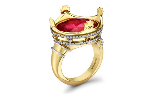 Theo Fennell :18克拉黃白K金鑲紅碧璽鉆石粉色藍寶石皇冠戒指,12,750鎊