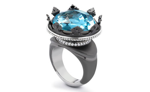 鑲黑銠藍黃玉鉆石皇冠戒指