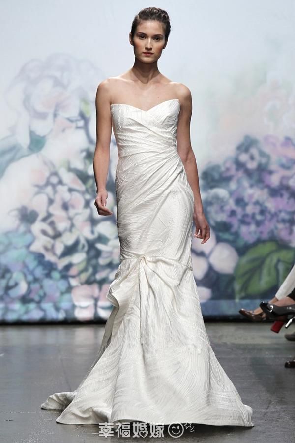 ??? 2011年度美國鄉村音樂協會獎 (CMA Awards) 頒獎典禮紅毯上,泰勒·史薇芙特 (Taylor Swift) 憑借一款白色J. Mendel禮服完美勝出,宛若出塵仙子般的氣質,對于婚紗禮服造型也很有啟發意義哦,裹身半魚尾+不對稱褶皺裙擺,把性感和飄逸感融為一體,放大高挑身材新娘的身材優勢