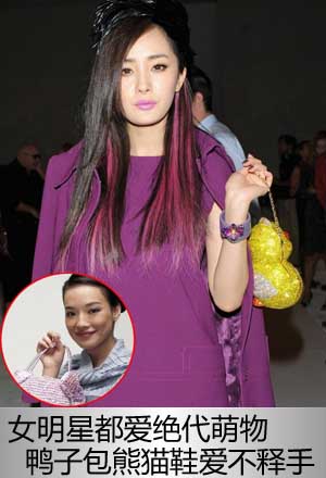 如何充分利用碎片化時間消費和消遣,我想女星們的微博秀很好地說明了這一點。嘟小嘴的,俏皮撒嬌的,秀性感照的等等,應接不暇。有些萌物女明星已經愛不釋手,那些鴨子包,熊貓鞋,大斗篷,真的有那么可愛嗎?讓我們來揭秘女明星最愛的萌寵小物!