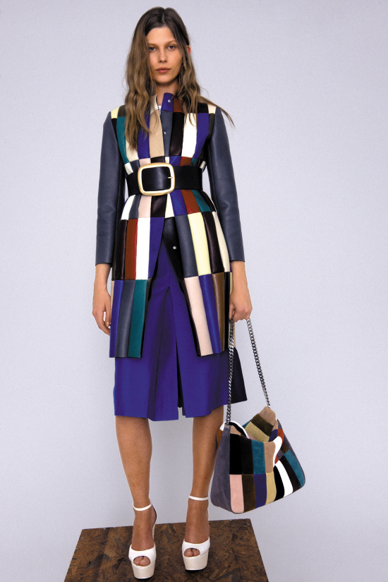 另外一位炙手可熱的創意總監Phoebe Philo繼續玩味強烈的對比風格,大膽明亮的色彩與出乎意料的組合同時出現,跟前幾季的極簡主義相比,已然豐富不少。中性元素涵蓋了西裝、襯衣、長褲等經典的明星款式。譬如引來不少話題的“視錯覺”西裝外套,靈感來自最為傳統的男式雙排扣學生服。正面不重疊的設計給人一種尺寸太小的錯覺,實為營造一種男孩子氣。而百搭的白色襯衣,這一男士衣櫥中最基本的單品,已經成為了CELINE極具象征性的款式之一,不論是燕尾服式還是男式經典款,易于搭配的白色襯衣都必不可少。里維埃拉長褲,靈感來自傳統的“La garonne”(喜歡穿著男式服裝的女孩),是那些上世紀30年代極具代表性的女性,在法國里維埃拉海灘別墅中閑逛時所穿的長褲,低胯闊腿設計,腰部裝飾雙層皺褶。不是簡單的哈倫褲,更有一種度假優雅風味。
