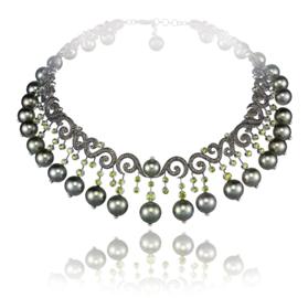 Chopard的紅毯高級珠寶系列幾乎將流蘇作為其整個系列的概念輪廓,即便如此,每年的新品中也都有讓人出乎意料的單品。2011年系列中有一款項鏈采用咖啡色鉆石鑲嵌成波浪形作為項鏈主體,然后向下垂墜33顆十分稀有的榛果色珍珠及金黃色翠石榴子寶石,整條項鏈融合了西方的哥特設計理念和東方的圖騰線條,鑲嵌寶石的組合也十分罕見,充滿神秘感。