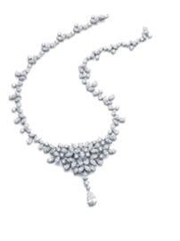 著名的TiffanyMajesticDiamondNecklace,由最高標準顏色、凈度與切工的圓型和梨型鉆石組成的精美絕倫的鉆石流蘇項鏈,柔軟的流線設計令人眼花繚亂。