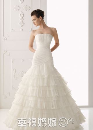 ??? alma novia2012婚紗采用了不少華麗的重工,比如十幾層的手工蕾絲裙擺,排列縝密的珍珠鑲邊,手工打造的珠片坎肩……相當(dāng)適合在冬季穿著,讓你優(yōu)雅華麗出嫁