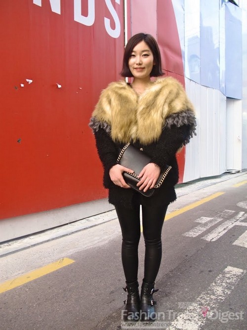 2. 皮草也同樣具有保暖效果,你可以穿著一件毛茸茸的黑色大衣,搭配黑色打底褲和軍靴,如果個子嬌小的你可以在肩部搭上皮草微薄御寒,同時準備一款時尚的手包吧
