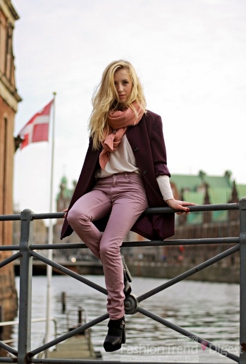 3. 如果你不想在冬天穿著深色調,你也可以選擇不同紫色搭配,深紫色的外套、淺紫色的長褲,以及粉色的圍巾,既保暖又能彰顯出年輕人的活力與青春氣息 ?