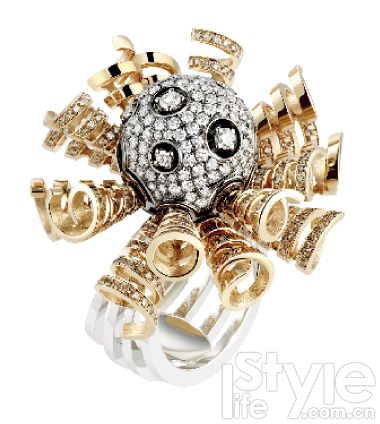 這是一款引用鉆石花向珍珠求愛的美麗傳說的戒指。象征忠貞愛情的繡線菊,輕巧依偎在指間的模樣,怎能不惹人憐愛?!