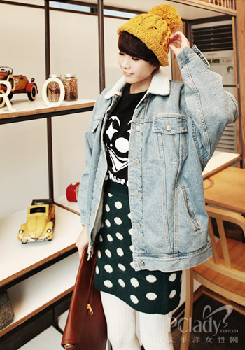 今年Boyfriend中性風(fēng)外套真的很流行,到處都能看到它的身影。簡(jiǎn)約的牛仔翻毛夾克帶點(diǎn)帥氣,搭配姜黃色毛線帽盡顯酷感時(shí)尚。內(nèi)搭波點(diǎn)長(zhǎng)款毛衣配上褲襪一樣可以穿出個(gè)性魅力來(lái),既有型又盡顯纖瘦筆直的美腿線條,大家不妨嘗試一下