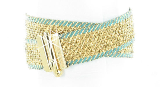 Caroline Bucci的黃金皮帶,金色與藍色撞色