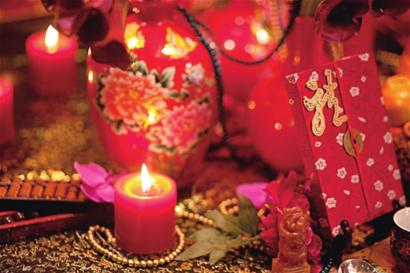 雖然在大部分婚禮上,新郎、新娘穿的都是西式的禮服式婚紗,但在婚禮的格調(diào)和裝飾上,大紅元素仍然是最受新人歡迎的系列,即是在平常日子,都有50%的新人會選擇這個色系,理由是喜氣、熱鬧、華貴、老人喜歡。而到了年底,比如元旦或春節(jié),更有將近70%的新人會選擇大紅色。然現(xiàn)在的紅色婚禮,絕不走過去那種“抬花轎+掀蓋頭”的老套情節(jié)。新人的要求是中西結(jié)合,紅要紅的典雅,富貴要富貴得有層次。此處要傳授大家一個小訣竅,有事沒事跑幾趟古玩市場、二手市場,花小錢淘一些好東西,經(jīng)過改裝就能讓婚禮上的大紅變得豐富而有韻味。