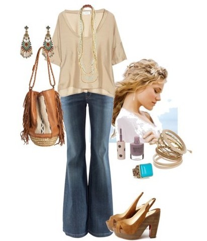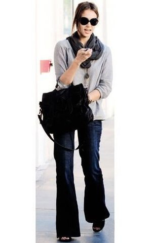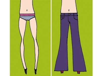 如果你的腿形有點X的話,那就可以選褲管設計成喇叭形的牛仔褲來掩蓋腿形上的缺陷。