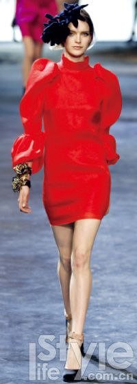 Sonia Rykiel 約RMB17000 不用多說,拼色已經是強調數次的流行主題。深沉的紅色不會過于夸張,而拼接的桃紅色袖子又不讓你流于平淡! TIPS 一件大衣是冬日里有型又保暖的保證!既然整身是紅色,那么在外套的選擇上就可以以黑色、灰色等深沉的顏色為主;但如果你是個非常自信的時裝精,那選擇一件同樣亮色來個撞色也不錯,顏色的選擇則尤為重要了,深沉的藍、黃色或者是紫色都能契合,款式的選擇也是同樣道理。即便是歡樂的節日,也務必不要把自己變成五顏六色的燈籠