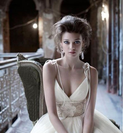 露肩的設(shè)計(jì),很能修飾肩部的曲線,并讓其展露無遺。性感的鎖骨讓你嫵媚感表現(xiàn)得淋漓盡致。腰間緊身的設(shè)計(jì),非常收腰,背后的大蝴蝶結(jié),可愛女人的幸福昭告天下。 復(fù)古的婚紗,有著難以言喻的美感。小豎領(lǐng)和特別的肩部設(shè)計(jì),充滿了淑女的美感。胸前金屬扣上的蝴蝶結(jié),端莊又美麗。婚禮的神圣感體現(xiàn)在蕾絲手套和珍珠耳環(huán)還有水晶皇冠上哦