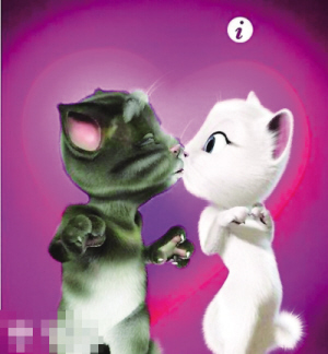 在這款情人節檔期更新的游戲里,那個收斂了好一陣子的湯姆貓“重出江湖”。只是這一次Talking Tom愛搞怪愛學舌的脾氣收斂了很多,更重要的是,湯姆帶回了一只妖嬈小白貓安吉拉。原來他隱姓埋名去追女朋友了。這款名叫“湯姆的情書”的游戲一經發行,便榮登下載量第一名的寶座。游戲里的湯姆貓不再學著主人說話,轉而內斂地和身旁的女友大秀甜蜜,除了不時的眼神交流之外,只需要觸碰屏幕,湯姆便會親吻或是擁抱身邊的白貓安吉拉。而且還有3首好聽的歌曲進行音樂伴奏,十分溫馨。