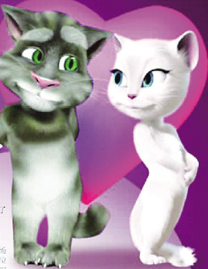 很容易看出來,這款游戲是為了情人節量身定做的,不光是湯姆和安吉拉互送秋波的背景是個玫瑰色的愛心之外,兩只貓還能在你的觸屏指揮下擺POSE拍照充當明信片。明信片上的湯姆或單膝跪地給女友送花,或因為女友給別的小貓拋了個媚眼便醋意大發。各種示愛動作讓人驚喜連連。這套由湯姆貓和安吉拉充當主角的明信片共有9張,可以通過彩信或是上傳到個人主頁的方式發送上傳,和他人共享甜蜜。