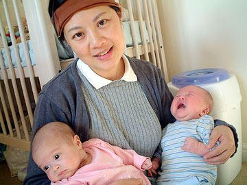 姜豐與自己的一對混血雙胞胎