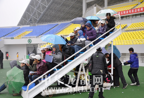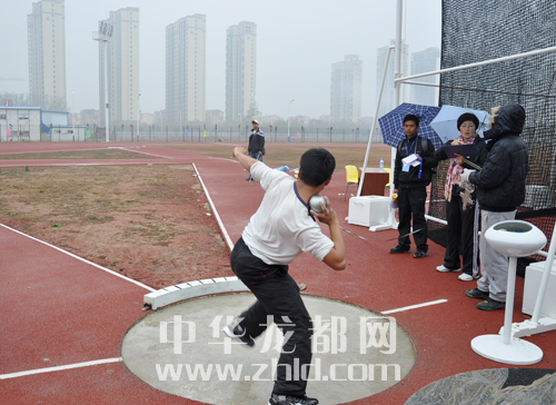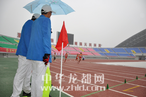 ??? 本網訊 11月22日下午,市二運會田徑賽場上徑賽項目冒雨進行。雨中,氣溫降至5攝氏度左右,觀眾也寥寥無幾。但是,我們的運動員和裁判仍然認真的進行著比賽。