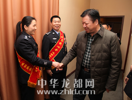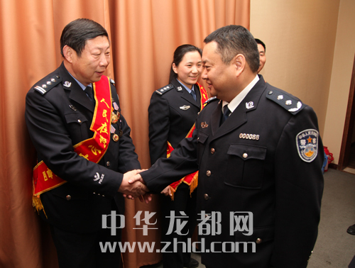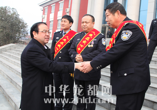 ????報告會前,周口市委常委、政法委書記朱家臣,副市長劉國連,市政府黨組成員、公安局長姚天民親切會見了報告團(tuán)成員并合影留念。