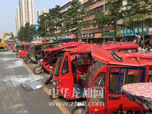 ????9月7日,百余輛三輪車在中心城區七一路上被統一銷毀。這些被銷毀的三輪車都是市交警部門在中心城區查扣的非法營運三輪車。晚報記者 朱東一 攝