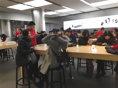 12月11日,蘋果王府井直營店售后服務等待區。 實習生 孫亞慧 攝