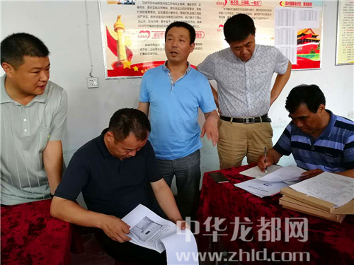 圖為李衛(wèi)東在扶貧基地調(diào)研,查看檔卡資料