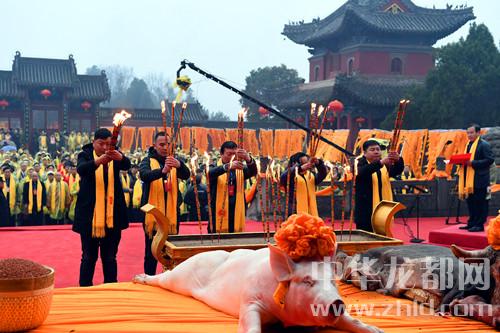 本報訊 (記者 侯俊豫 李莉) 3月18日,農歷二月初二,巍巍羲陵,古柏新枝,2018(戊戌)年公祭中華人文始祖太昊伏羲氏大典隆重舉行。來自海內外的千余名羲皇子孫匯聚太昊陵統天殿前,共祭中華人文始祖太昊伏羲氏,祈愿華夏繁榮昌盛,共祝世界和平和諧。