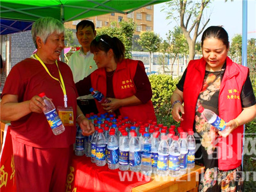 愛心助考活動現場,西華縣真愛醫院黨支部設立的“黨旗引領、護航高考”的大紅愛心助考條幅分外惹眼,黨員志愿者們免費為考生提供藿香正氣水、風油精、退燒藥等,并有醫護人員現場提供急救服務。在西華縣恒生醫院黨支部愛心助考點前,3名醫護人員正在免費為考生及家長提供風油精、清涼油、仁丹、藿香正氣水等防暑降溫藥品和急救藥品,還有擔架、120急救車輛等。西華縣北華醫藥黨支部愛心助考服務站的黨員志愿者,正在向考生免費提供防暑降溫藥、感冒發燒藥、拉肚子藥等藥品。黨員志愿者愛心企業代表宋女士說:“在高考期間,我們為考生及家長免費提供礦泉水、芭蕉扇、清涼油等多項服務,除了愛心,更多的是一份責任和使命。”