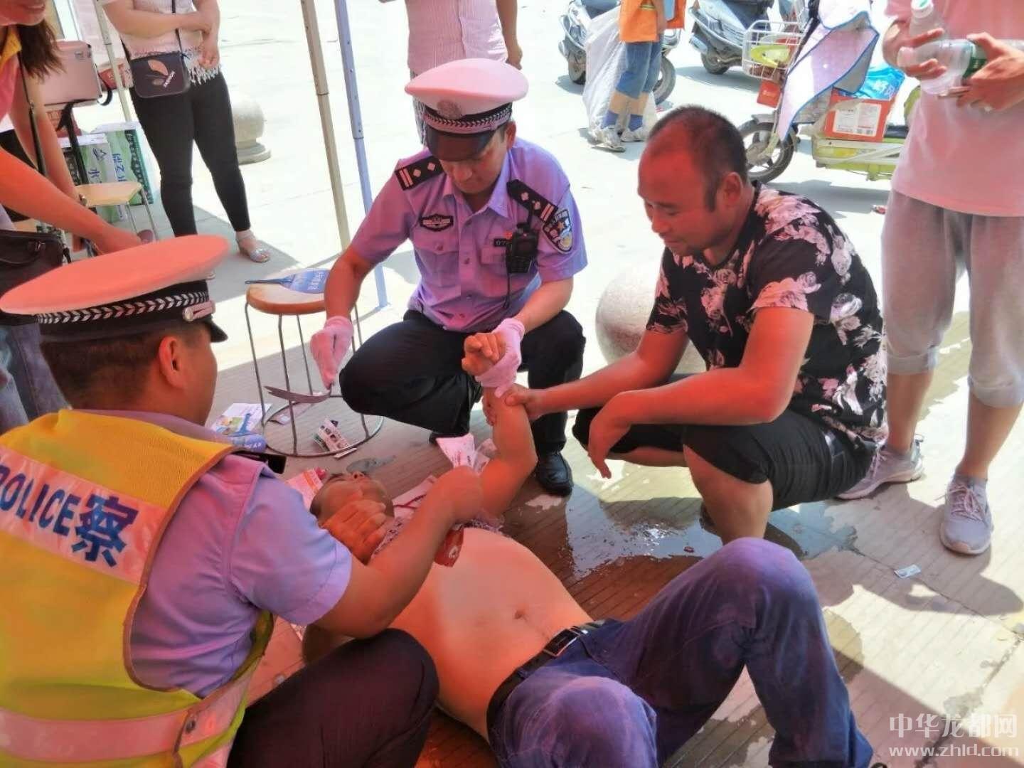 中華龍都網訊(周口報業全媒體記者 陳永團 姬慧洋 文/圖)6月7日上午12時許,一名在沈丘縣一高門口等待考生離場的家長突然暈倒,正在進行高考安保工作的沈丘縣公安局交警大隊城區管理中隊中隊長劉濤伸出援手,及時將其送醫搶救后脫離了生命危險,這一善舉被圍觀群眾點贊。