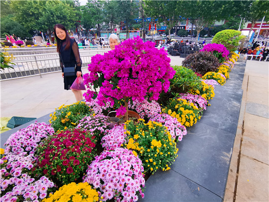 9月27日,在中心城區五一文化廣場,市民在鮮花盛開的花壇走過?!笆弧迸R近,五一文化廣場裝扮一新,各色花卉和造型樹木分布在廣場的各個方位的花壇內,吸引市民觀賞拍照。②9