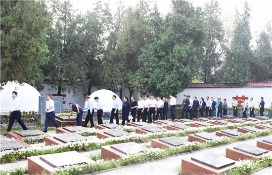 羅文閣緩步上前,代表縣四個班子仔細整理緞帶。全體人員面向烈士紀念碑行三鞠躬禮,并深情瞻仰烈士陵園,向英雄烈士獻上鮮花,表達對烈士的無限敬仰和哀思。①15