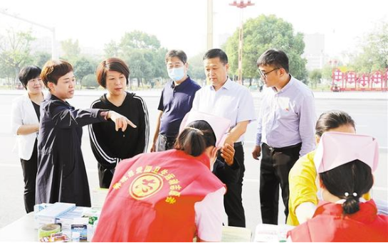 本報訊(記者 徐松 通訊員 侯同廷)國慶節前夕,鄲城縣衛健委根據國家衛生健康委開展2020年“服務百姓健康行動”全國大型義診活動周的部署,組織4家醫健集團總醫院相關科室醫護人員在縣世紀廣場開展義診活動。副縣長肖煒、縣衛健委主任付登霄等到義診現場指導工作(如圖)。