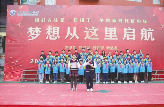 10月13日,是中國少年先鋒隊誕辰日,又稱少先隊建隊紀念日。周口市文昌小學堅持以立德樹人,把課堂教學與主題活動相結合,開展了多種多樣的“國旗下成長”主題教育活動。圖為在10月12日的升旗儀式上,六(4)中隊少先隊員向全校學生普及紅領巾知識。記者 王珂 通訊員 魏云紅 攝