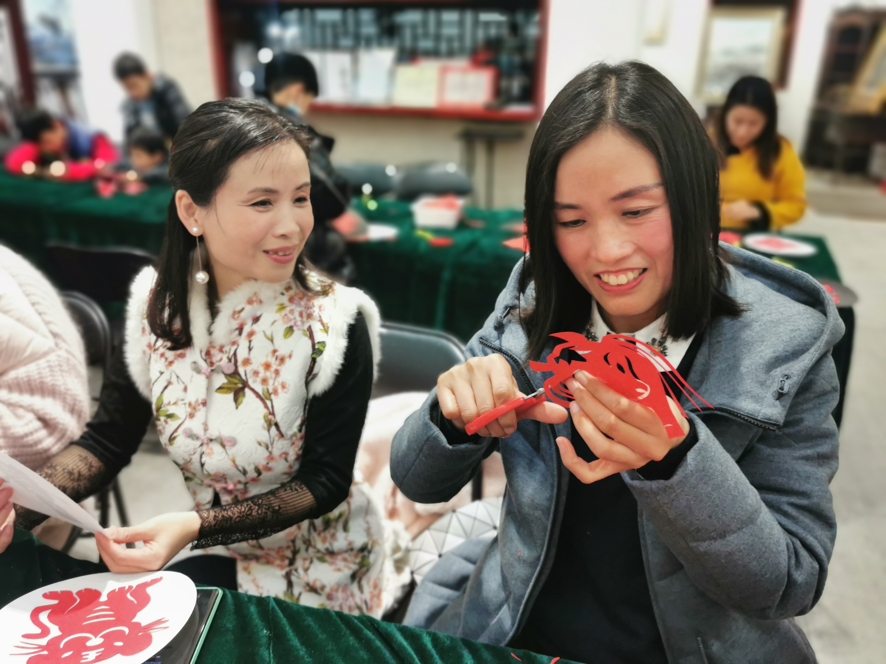 剪紙表現了中華民族淳厚雋永的民情與民風,是中國民間最為流行的一種藝術形式。為了讓大家學習、傳承這種極具傳統色彩的藝術,蕓雅讀書社組織了學習剪紙的活動。現場,大家用剪刀在紅紙上剪出福、祿、壽、喜和各種圖案,極具喜慶吉祥的寓意,讓人們感受到了傳統新年的熱鬧。②8