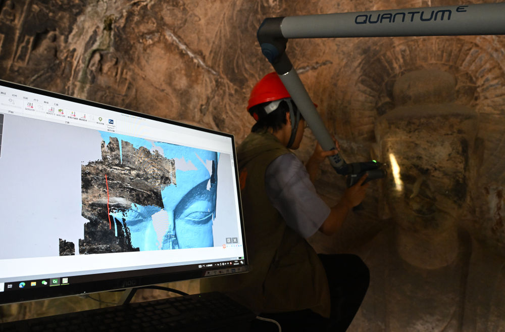 面對(duì)歷經(jīng)千年的石窟,如何延續(xù)其生命力?科技成為關(guān)鍵答案。文物保管展示與文獻(xiàn)資料中心的張國(guó)鋒,日常工作便是對(duì)石窟進(jìn)行三維數(shù)字化掃描。他介紹,通過(guò)這項(xiàng)技術(shù)建立的高精度數(shù)字檔案,不僅實(shí)現(xiàn)文物信息的永久保存,更讓不可移動(dòng)的石窟“走出去”,突破時(shí)空限制,讓更多人領(lǐng)略其文化魅力。