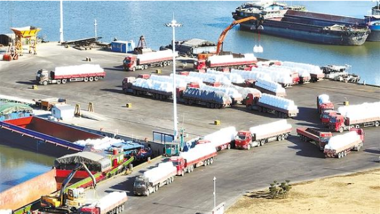 初冬的沙潁河畔,臨港開發區呈現出一派繁忙景象。在中心港范營作業區,岸橋吊臂有序起落,集卡車輛川流不息。