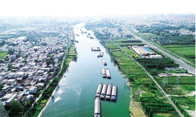8月22日下午,沈丘縣城東側沙潁河段,貨船鱗次櫛比,或停靠航道邊歇息,或開足馬力前行。