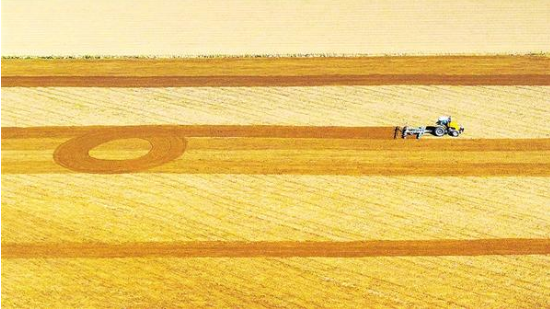 近日,一輛大型農機在扶溝縣大李莊街道常崗村的農田耕作,為播種冬小麥做準備。