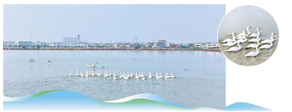 11月10日,在淮陽龍湖國家濕地公園,一群白天鵝在湖面暢游。近年來,由于濕地生態環境持續良好,每年春、冬季,都有白天鵝等候鳥在遷徙途中到這里“歇腳”。