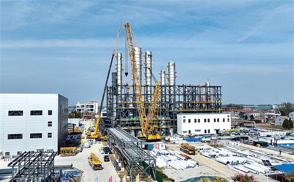 10月24日,在河南金丹乳酸科技股份有限公司年產15萬噸聚乳酸項目建設現場,一臺800噸級塔吊正在繁忙作業。