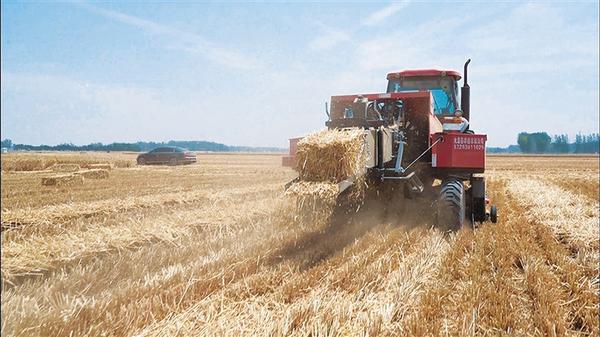 近年來,太康縣積極探索秸稈綜合利用新路徑,引進秸稈打捆機、粉碎機,推行秸稈打捆離田、粉碎還田,不僅幫助農民解決了秸稈處理難題,還拓寬了農民增收渠道。圖為麥收結束后,一臺秸稈打捆機在田間作業。