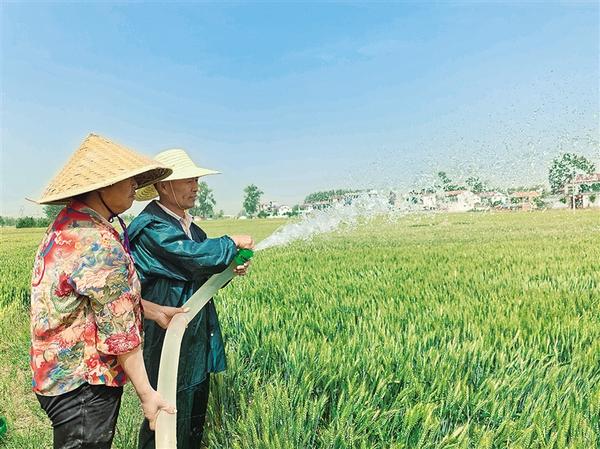 近日,記者在沈丘縣趙德營(yíng)鎮(zhèn)碧綠的麥田里看到,一臺(tái)臺(tái)噴灌機(jī)均勻地噴灑“甘露”,喝足水的麥苗在微風(fēng)中搖曳。“眼下正值小麥抽穗揚(yáng)花期,我們通過科學(xué)調(diào)度、全員參與等舉措,確保讓小麥喝足灌漿水。目前,全鎮(zhèn)已累計(jì)完成6.5萬畝小麥的灌溉作業(yè)。” 趙德營(yíng)鎮(zhèn)鎮(zhèn)長(zhǎng)楊曉麗望著一望無際的麥田開心地說。